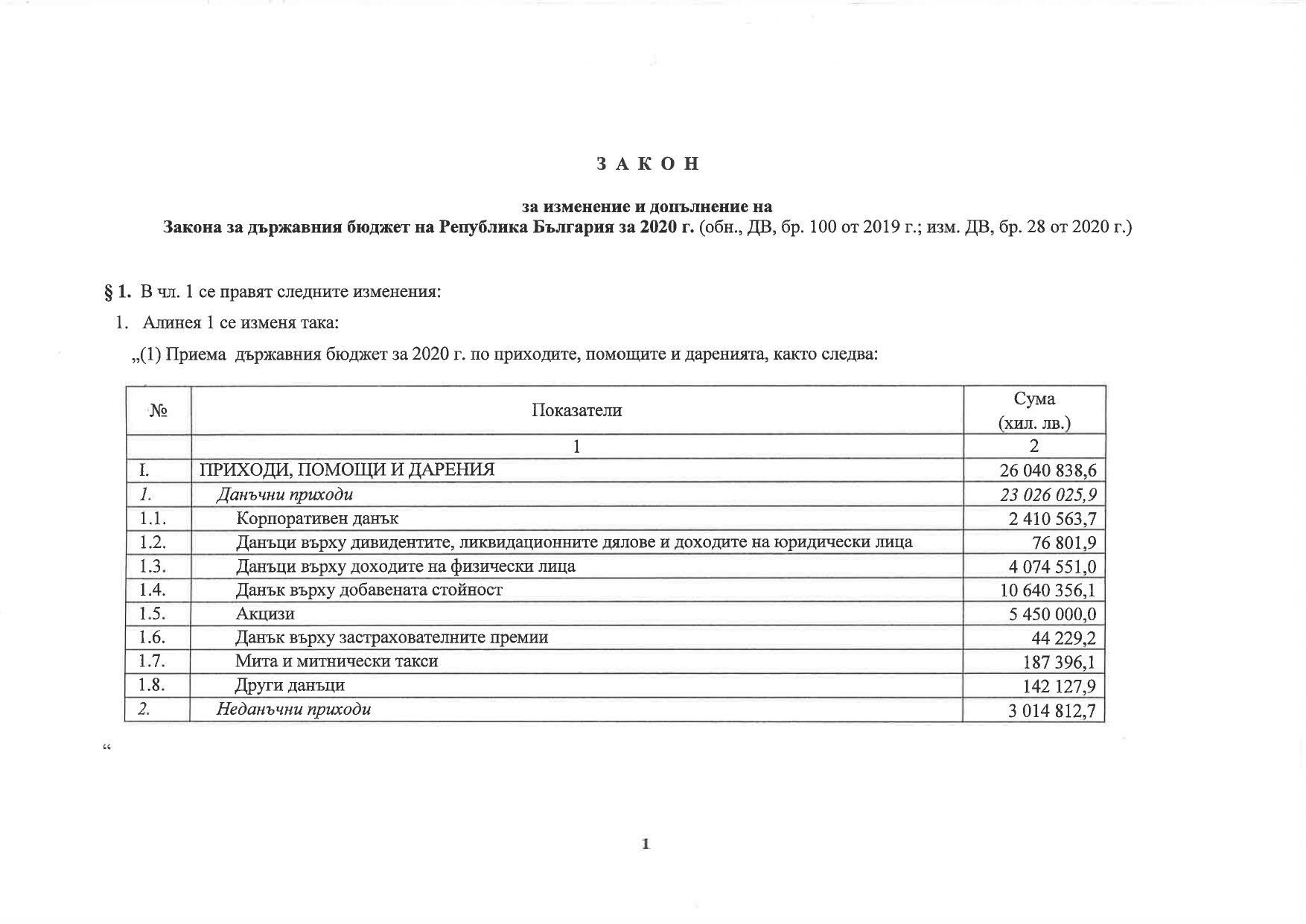 закон за държавния бюджет 2020